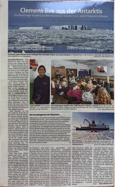 Unsere 1. und 3. Klassen hatten einen aufregenden Termin: Wir wurde per Videocall zu den Forschern auf das Expeditionsschiff Polarstern geschaltet. Diese sind gerade in der Antarktis unterwegs und erforschen die Auswirkungen des Klimawandels. Die Forscher zeigten uns das ganze Schiff und beantworteten unzählige Fragen. Das war ein unvergesslicher Tag.